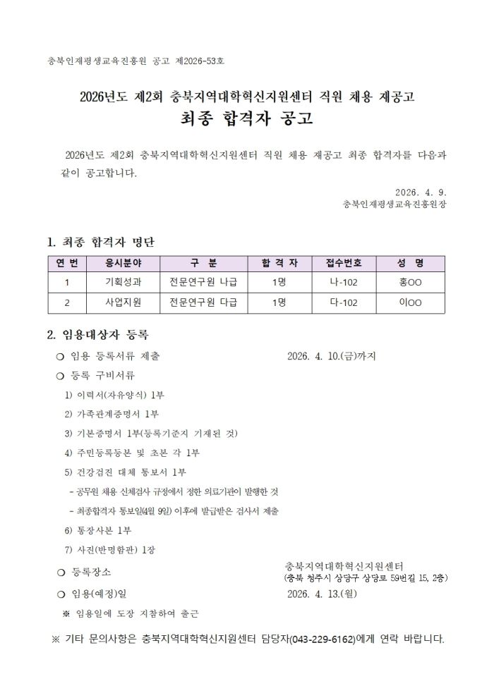 (공고_제2026-53호)_2026년_제2회_충북지역대학혁신지원센터_직원_채용_재공고_최종합격자_공고.pdf